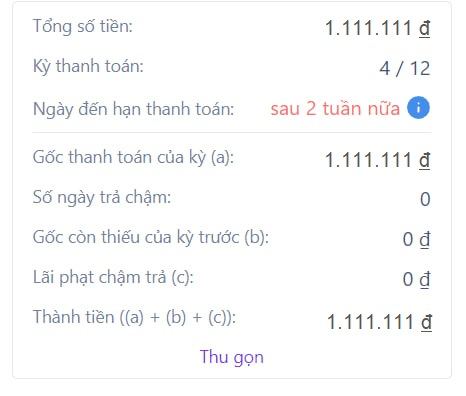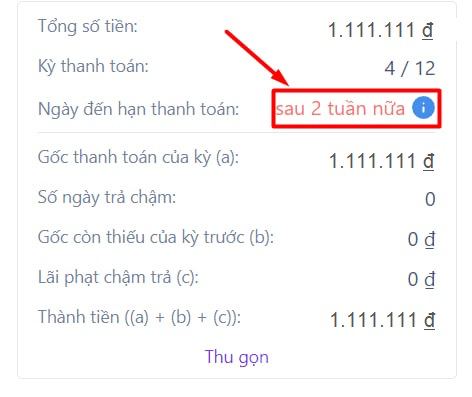 Sau khi chọn hoặc trỏ chuột vào phần dấu chấm than sẽ hiện ra ngày chính xác đến hạn thanh toán của khoản bảo trợ